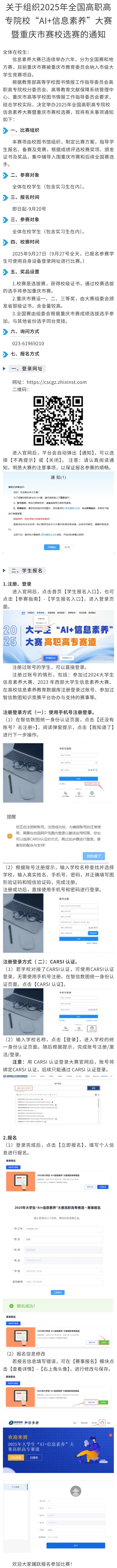 上一条:关于调整2025年全国高职高专院校“AI+信息素养”大赛暨重庆市赛校选赛报名时间的通知